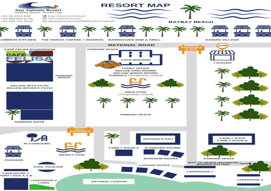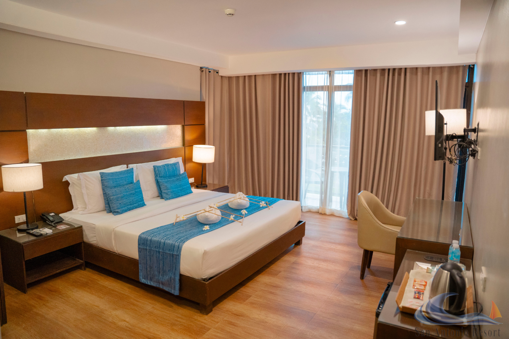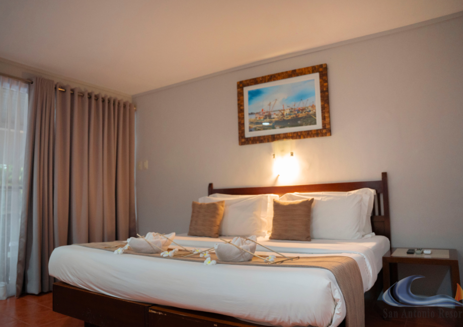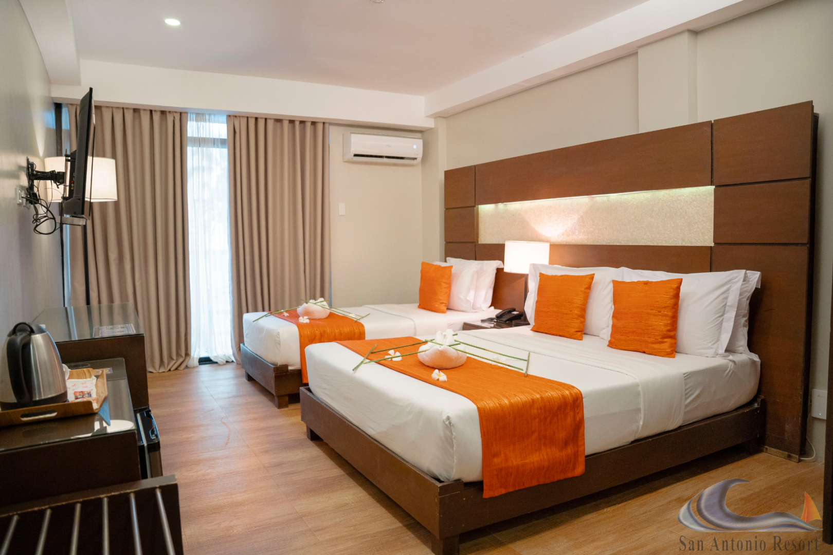 Located at the Main Building, with either the view of Baybay Beach or the garden, this room measures approx. 22 sqm., furnished with 1 queen sized bed (60 x 78) and 1 single bed (39 x 78).