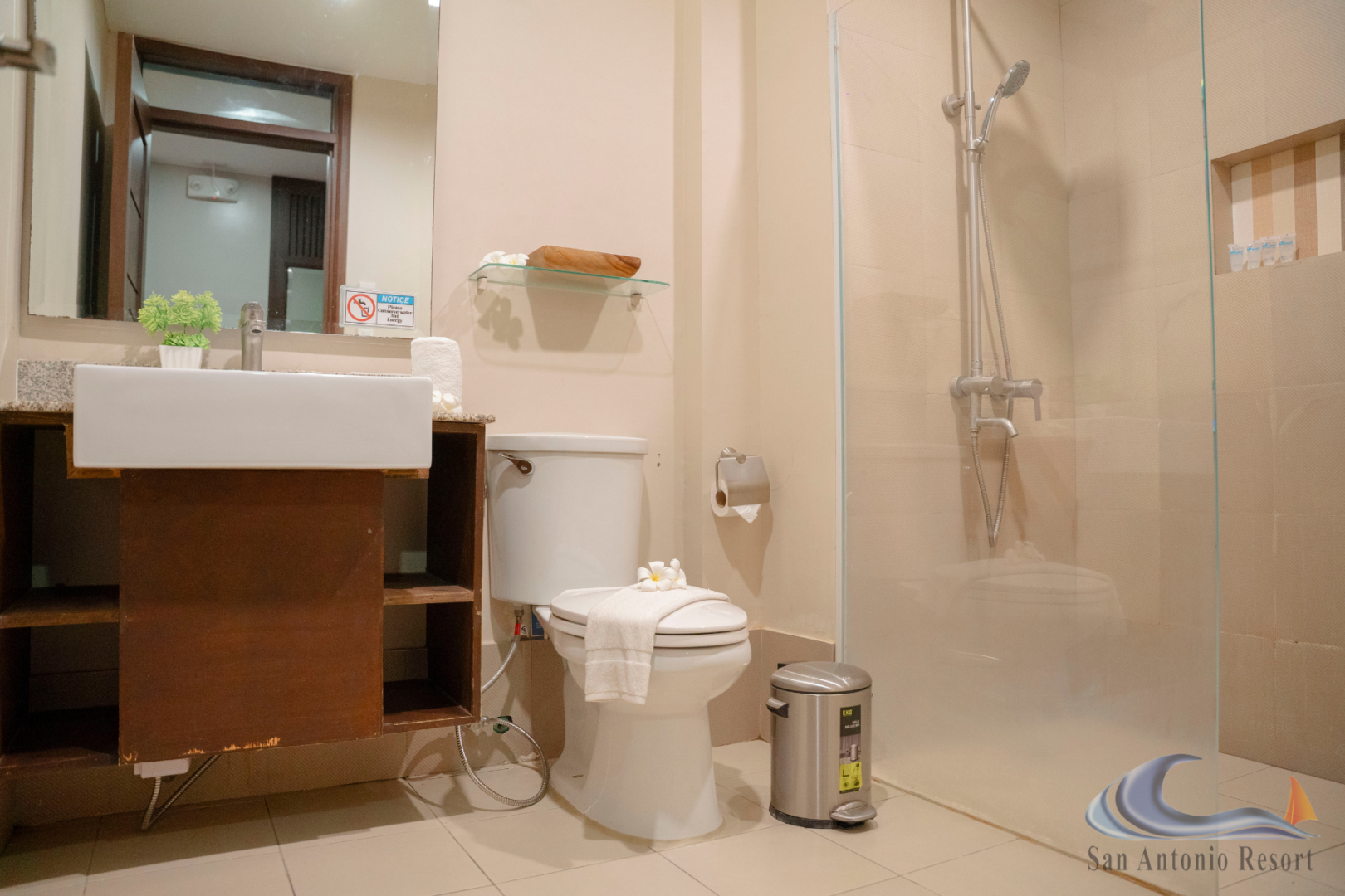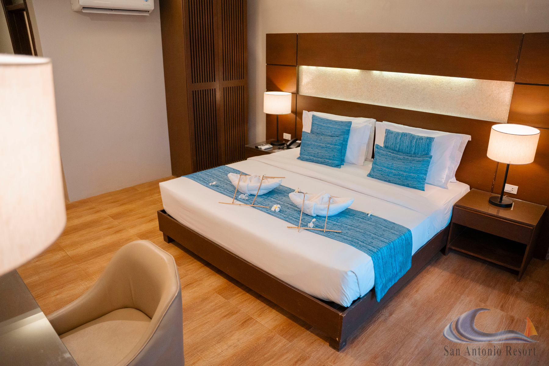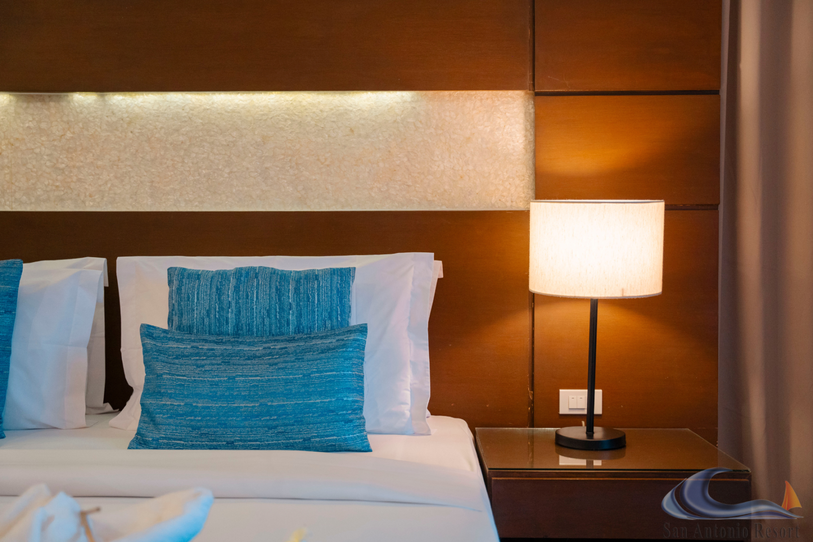 Located at the Main Building, with either the view of Baybay Beach or the garden, this room measures approx. 22 sqm., furnished with 1 queen sized bed (60 x 78) and 1 single bed (39 x 78).